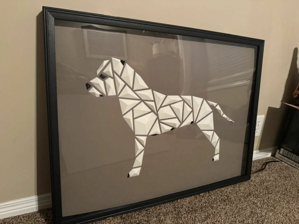 Sublimez votre intérieur avec ce Staff polygonal 3D, un hommage à la tendresse et à la loyauté de cette race. Ce portrait canin, réalisé avec une impression 3D, apportera une touche de chaleur et de douceur à votre espace. Ses formes géométriques en font un objet de décoration à la fois original et réconfortant.