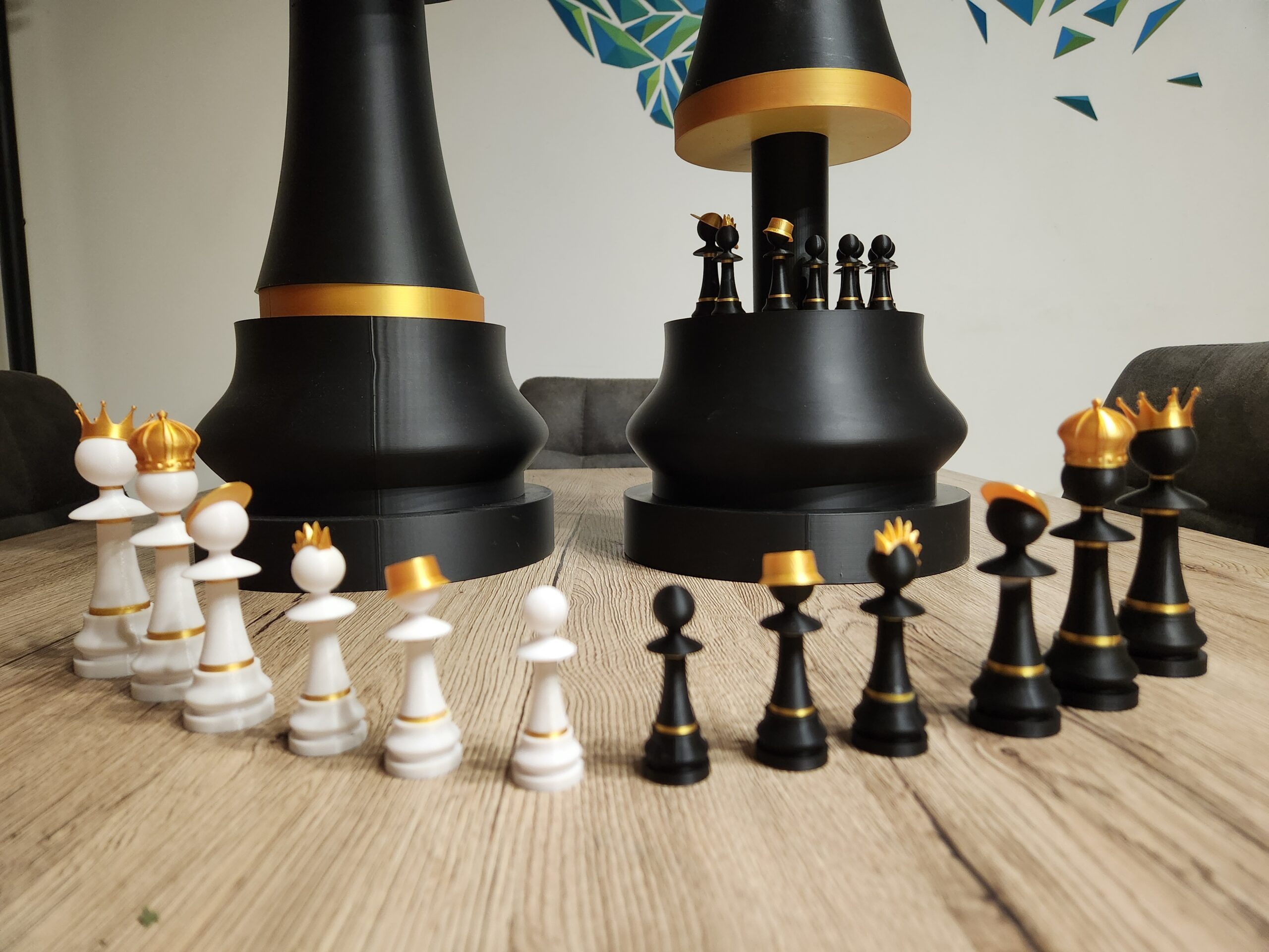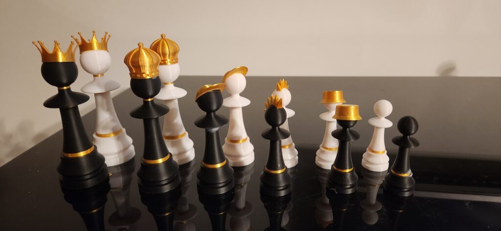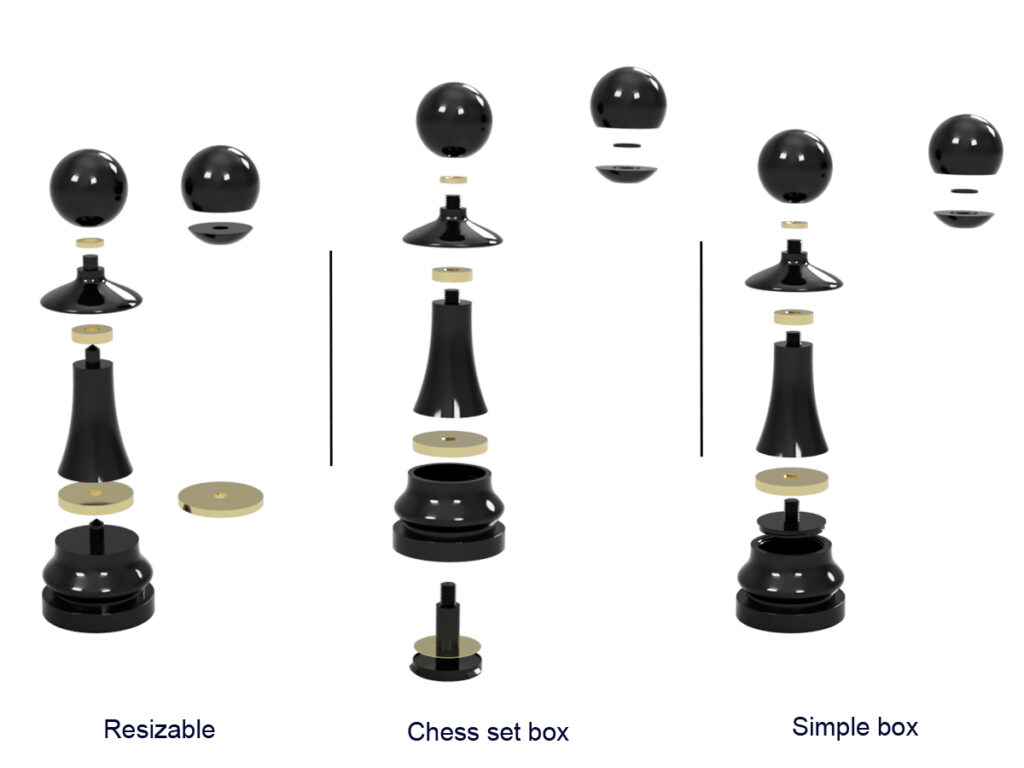 A variation of the large pawn is also available as a complete chess set, based on the design of the main model in a playful and cohesive version. This variation allows you to create a harmonious and original set, perfect for chess enthusiasts and lovers of contemporary design.