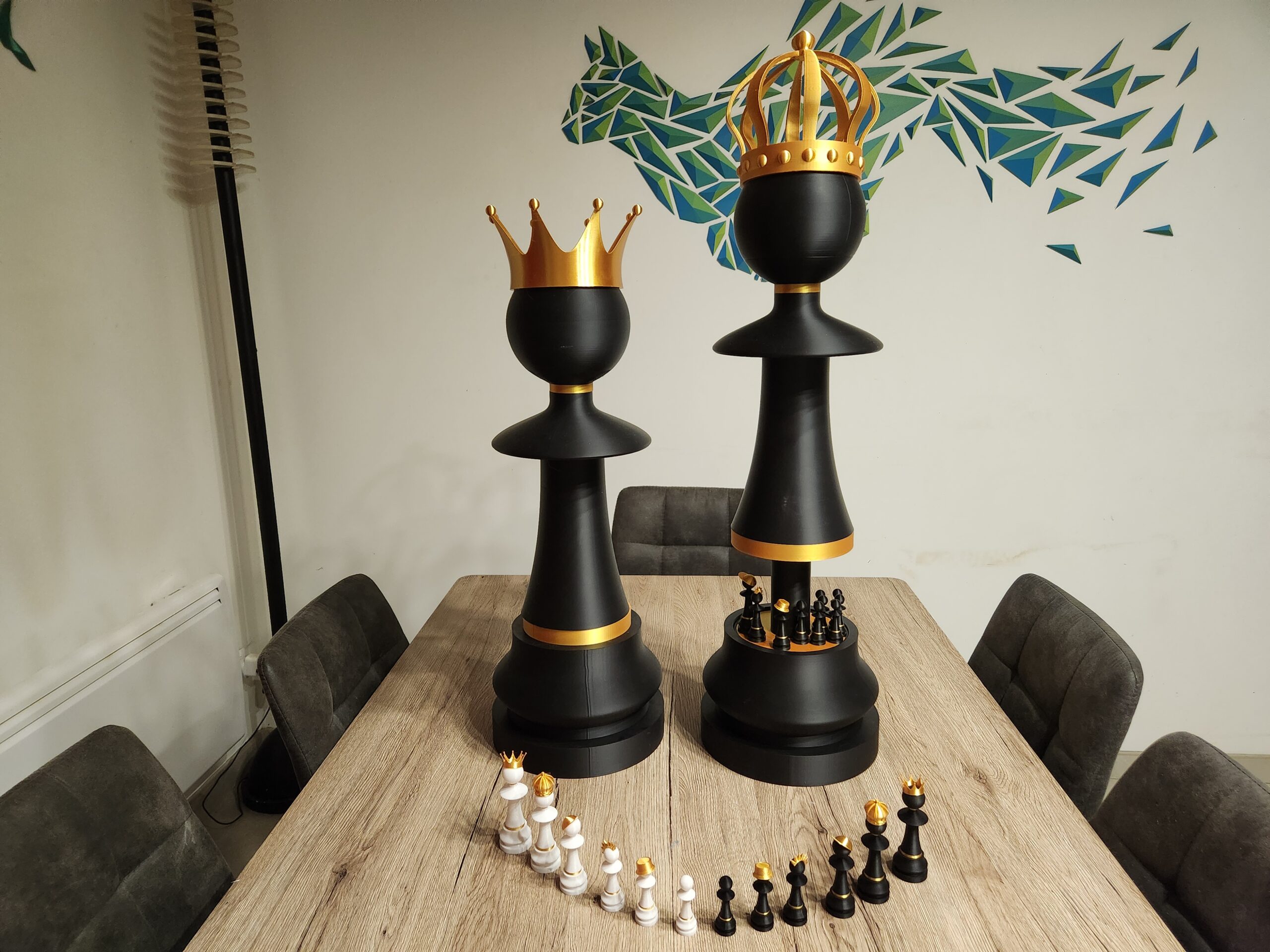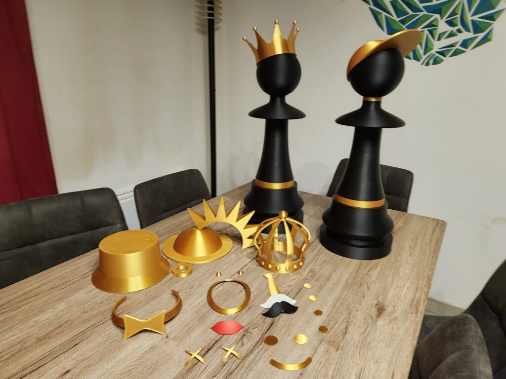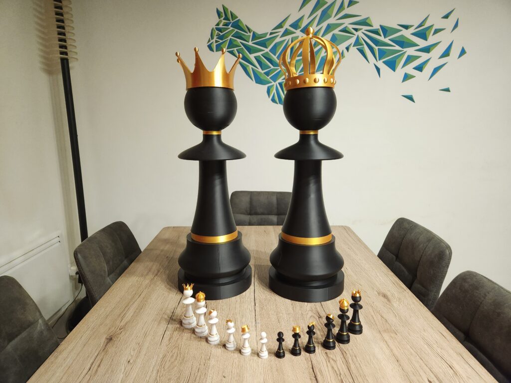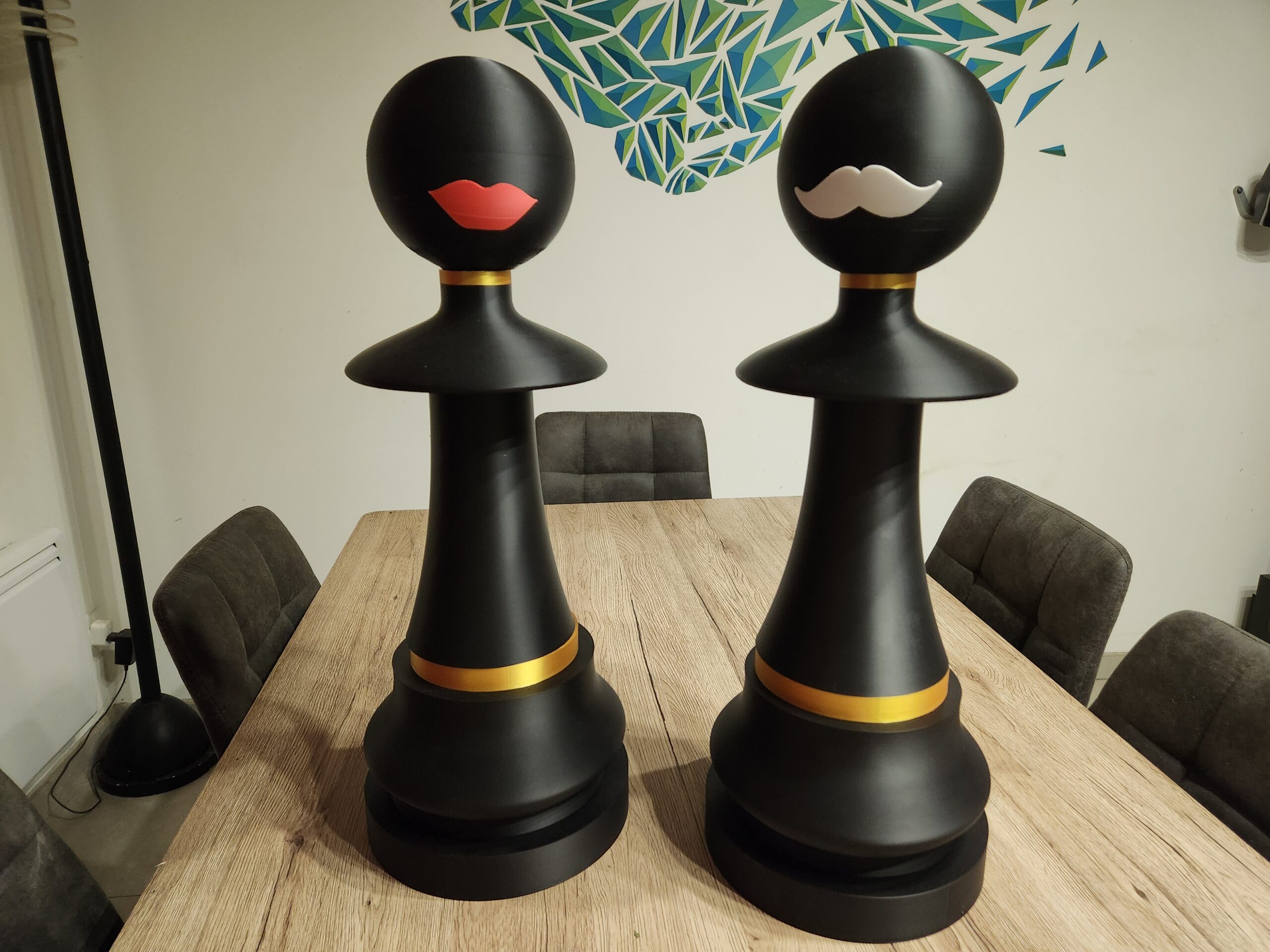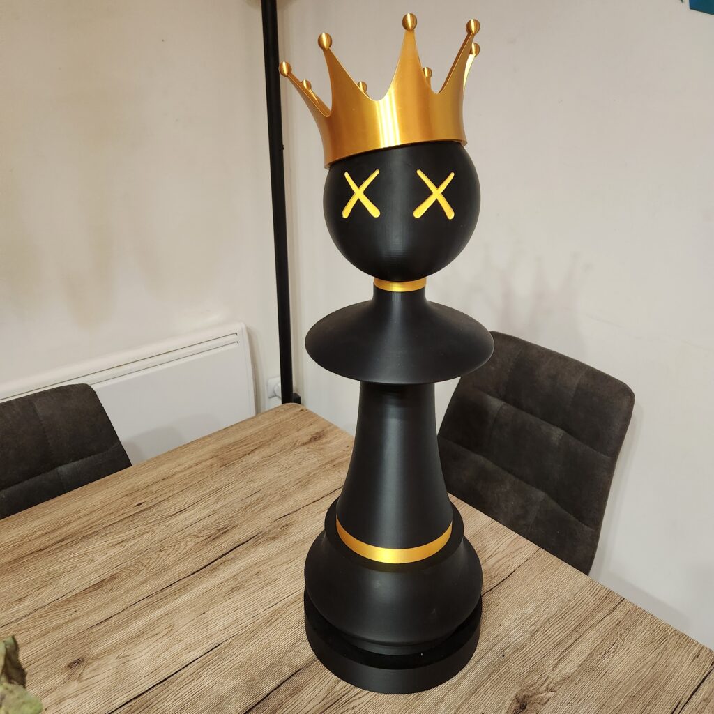 Bring a spectacular and original touch to your interior with this large designer and customizable chess pawn, a unique decorative piece that combines play, art, and creativity. Designed as both a playful and aesthetic object, this oversized pawn becomes a true decorative element, ideal for a living room, office, showroom, or event space