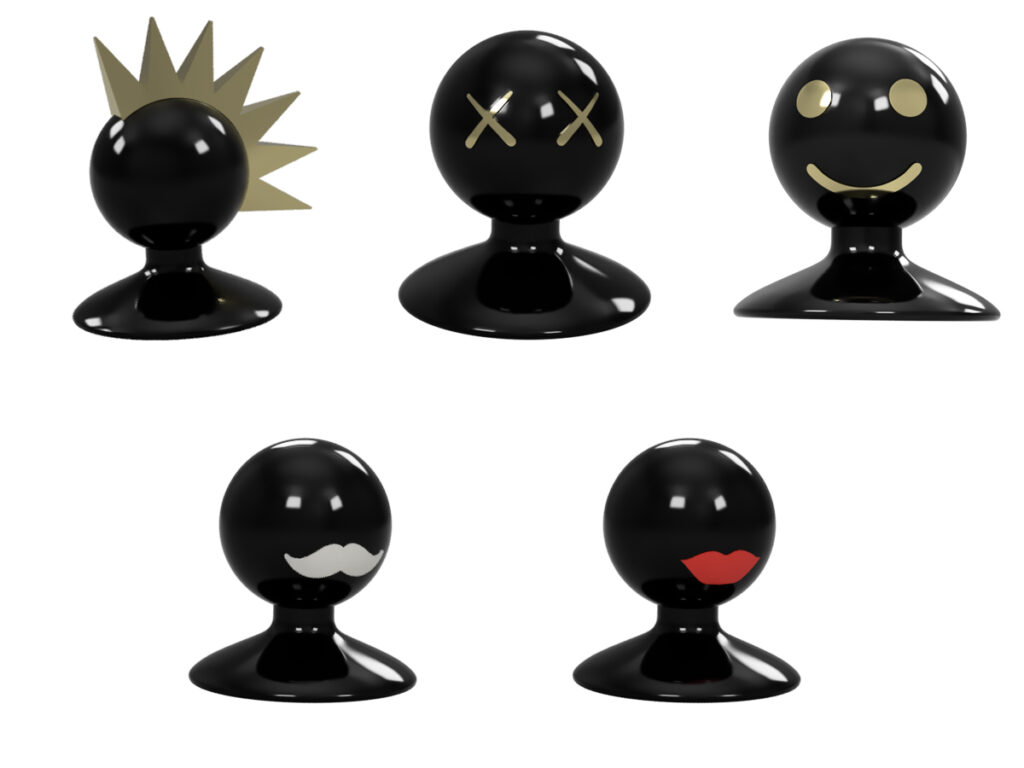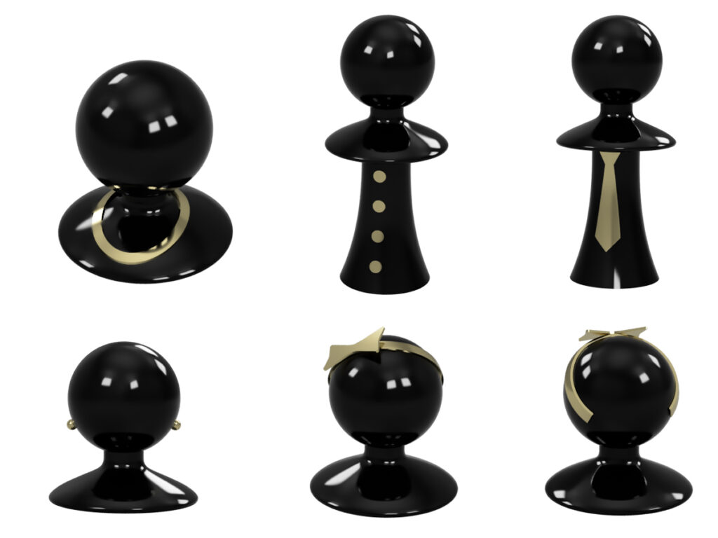 Its elegant silhouette, inspired by classic chess pieces but reinterpreted in a modern style, comes with interchangeable accessories that allow you to create unique characters full of personality